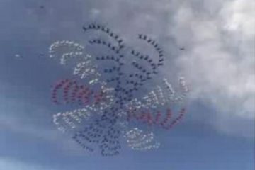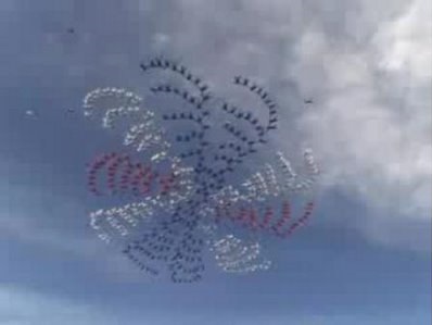 Cloud City skydiving – red white blue disc spiral formation sky dive