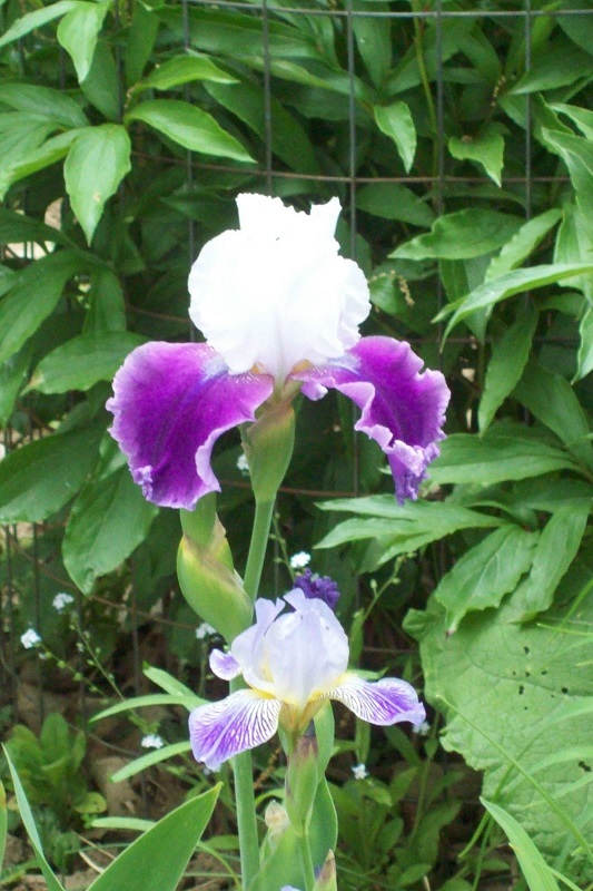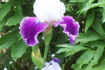 purple leaves white Iris flower
