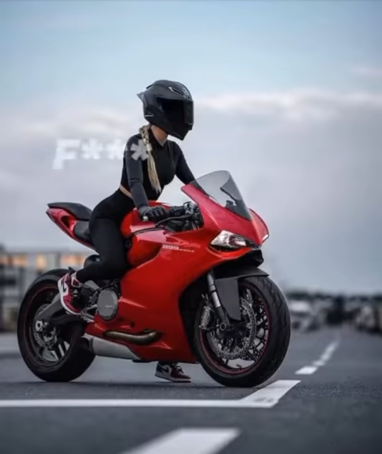 Street Races pg – sexy tan blonde straddling her street-bike – cropped – red motorcycle – Angela Yyyyyy russian fb