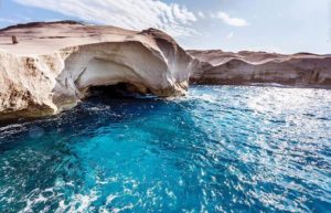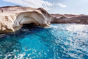 Beach Assault rocks – Sarakiniko Beach, Greece – called Lunar landscape by locals – Aegean Sea