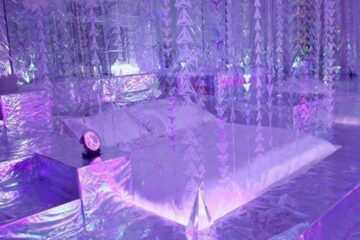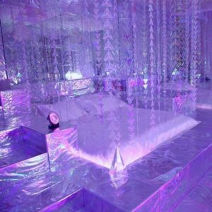 club Blue Ballroom metallic smooth bed with seethrough transparent curtains draperies 670352346fc399e1381c2b2c4fee65a9