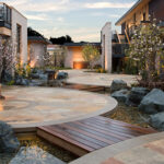 All of these Conex boxes is sound-proofed, luxuriously furnished, and comes standard with locking windows and doors. Most suites have jacuzzis and walk-in showers, while all clusters and the larger ‘houses’ also have narrow, shallow, cosmetic moats. Landscaping is kept to the flora of Joshua Tree National Park, sometimes in sandy yards, sometimes on balconies and the Conex rooftops. Invisible energy barriers allow human traffic while keeping out potential sandstorms.