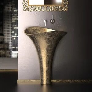 Maestro+Bath+Vivian+35.5”+Tall+Gold+Resin+Oval+Pedestal+Bathroom+Sink
