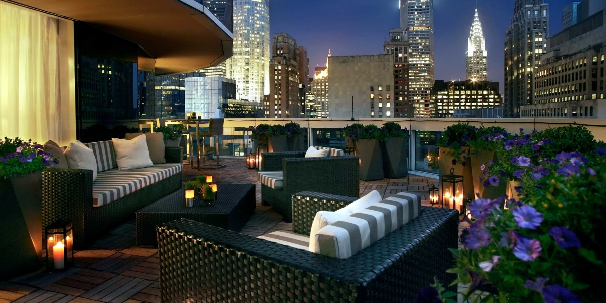 great rich vampire style level roof patio balcony wicker chair-and-a-half-s candles plants