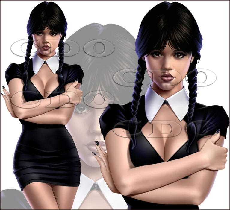 Feb2023KeithGarvey-vi Wednesday Addams hot slutty swoop cleavage outfit ambi typist sent
