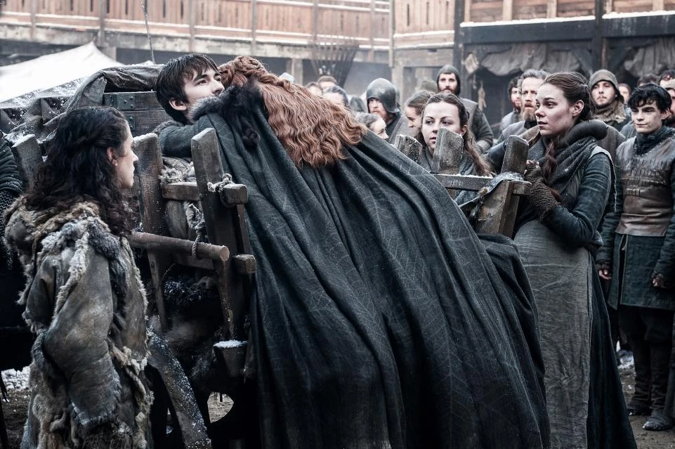 Jon organizes the North’s defense against the White Walkers. He asks Tormund and his people to man the Wall at Eastwatch-by-the-Sea and Tormund agrees. When the issue of the lands and strongholds belonging to the Umbers and Karstarks arises, Sansa says these castles and lands should be given to new families who fought with House Stark against the Boltons. Jon disagrees, stating that the children of Houses Umber and Karstark cannot be held accountable for the past mistakes of their fathers and elder siblings and the children of these houses will retain their family lands and castles. Sansa disputes Jon’s decision in front of Jon’s bannermen. Ned Umber and Alys Karstark pledge fealty to House Stark.