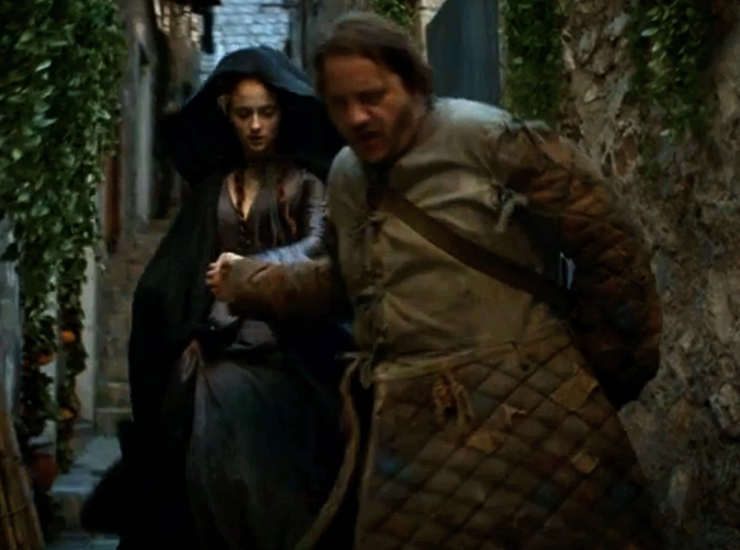 Sandor and Sansa discuss the tragedy in their lives.
