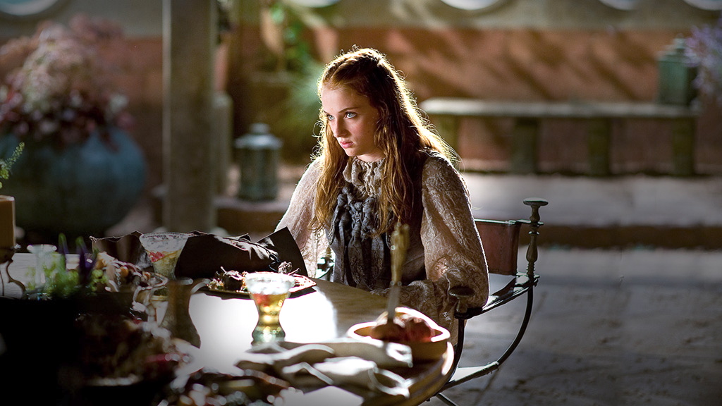 When she lived at Winterfell with her family, Sansa grew up as the eldest daughter of a Great House, trying to emulate her mother’s example of a “proper lady” from the southern courts. Sansa’s devotion to the traditional, refined “feminine virtues” caused friction between her and her blunt, tomboyish younger sister Arya, with whom she had a sibling rivalry. As a little girl, Sansa naively believed in the tales and epic romances in which every princess gets her honorable knight in shining armor to sweep her off her feet. Sansa was infatuated with the traditional romances about mythical figures like Jonquil, and historical figures like Duncan Targaryen. Her greatest goal in life was to be married to a heroic and handsome prince, sitting around with other noblewomen eating lemon cakes while gossiping about the goings-on at court.