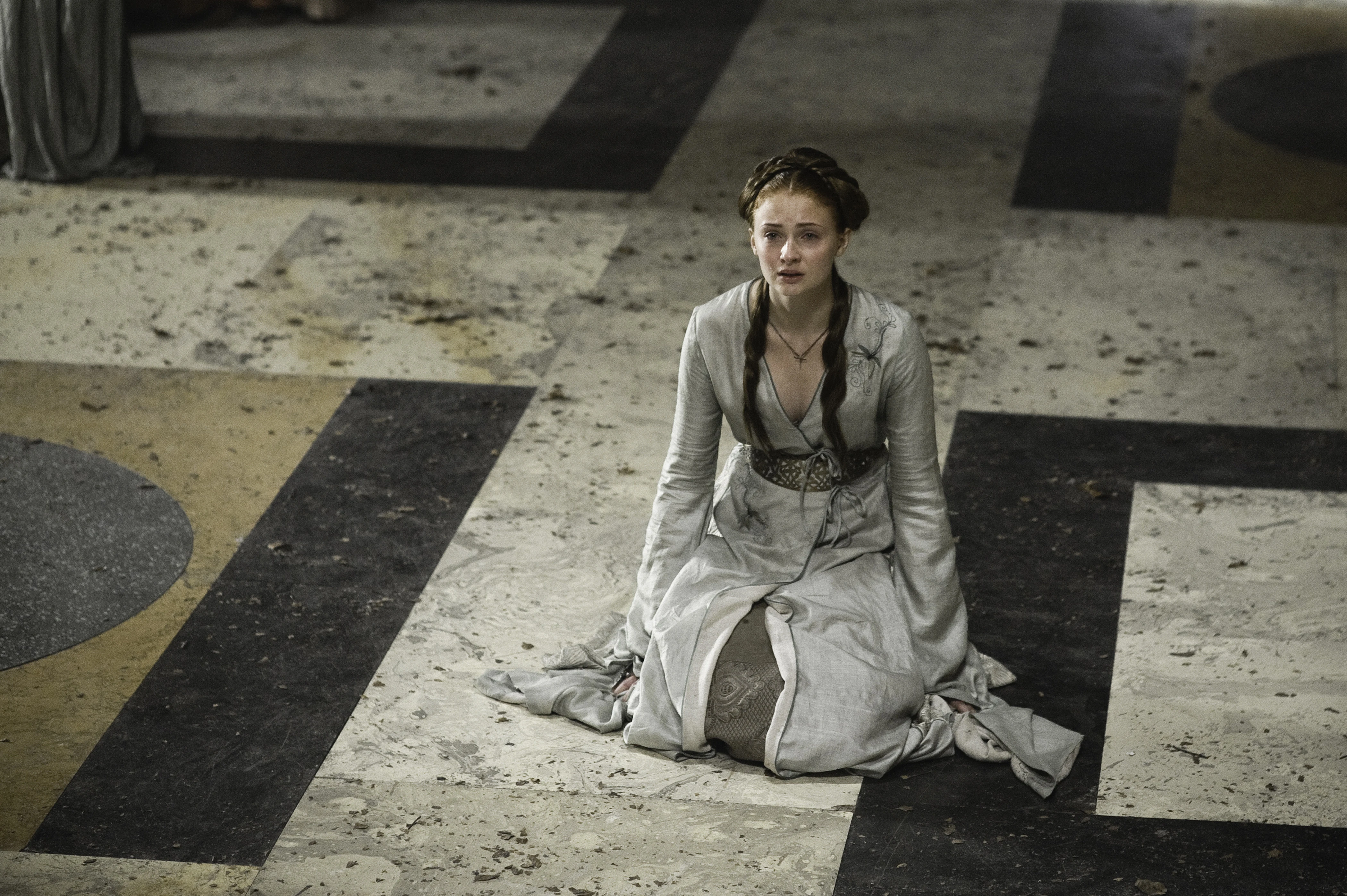 Sansa during the Battle of the Blackwater.