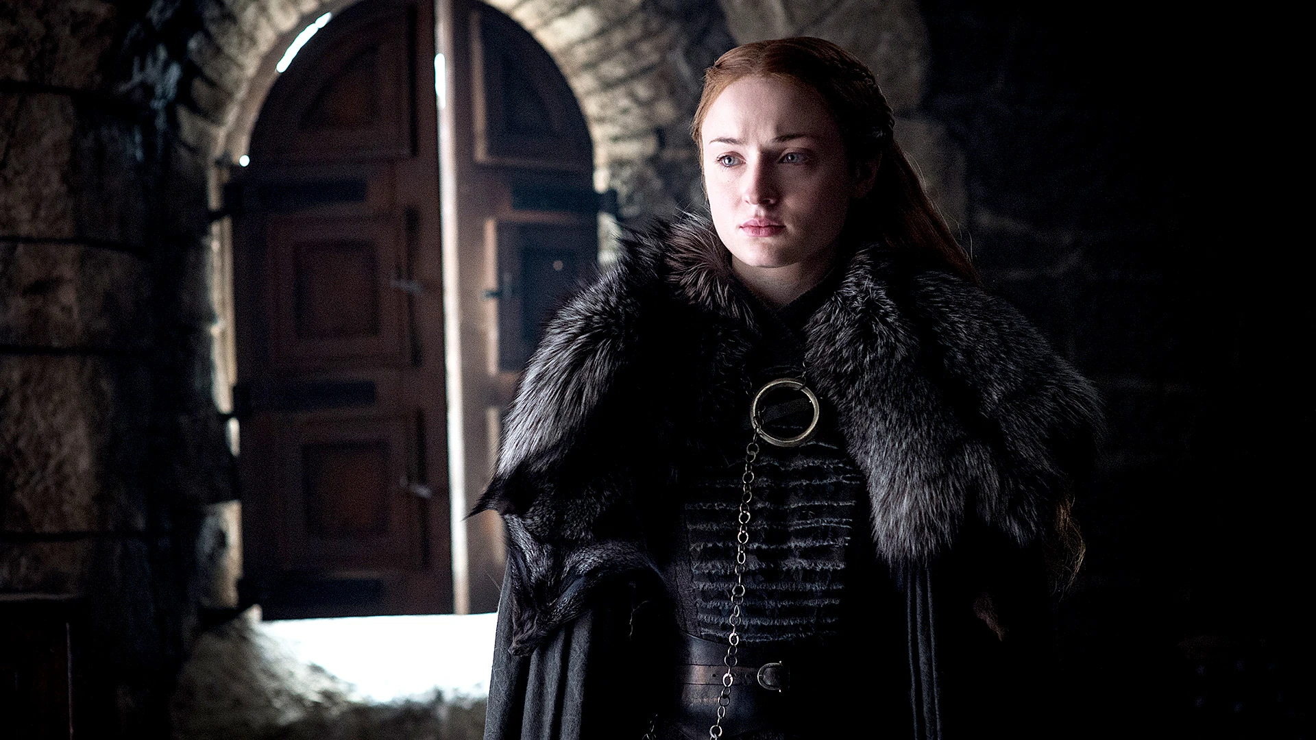 With Winterfell firmly under Stark control, Sansa joins Jon on the ramparts as he watches an exiled Melisandreheading south. He tells her that he is having the Lord’s chambers prepared for her. Although she protests that he should have it, Jon refuses, telling his sister he is not a Stark. Sansa tells Jon that he is a Stark to her, but he still refuses, telling Sansa that she deserves it as the Lady of Winterfell and because the Knights of the Vale came because of her, resulting in their victory. Jon asks her about Littlefinger and whether they can trust him, to which she insists that they cannot. Sansa apologizes for not telling him about the Knights of the Vale. While he understands why she didn’t tell him about Baelish, Jon insists that they have to trust each other completely now that they have so many enemies. He kisses her on the forehead and when he turns to leave, Sansa calls him back. She smiles as she tells Jon that a white raven arrived from the Citadel, announcing the arrival of winter as their father had always predicted. Jon returns her smile.