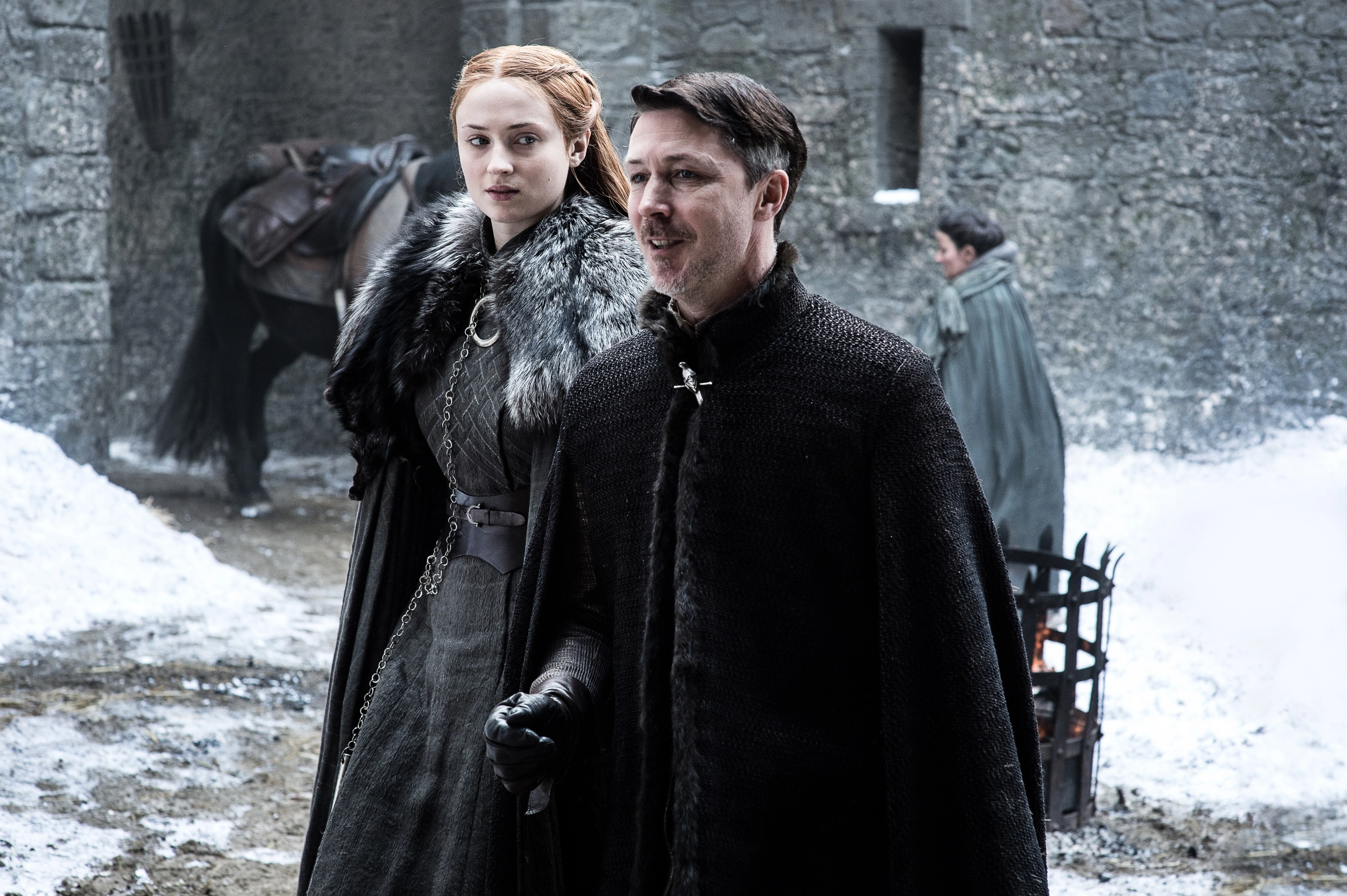She is later approached by Littlefinger to see if she is truly “safe” and “happy”. Sansa confirms her safety in Winterfell, but Baelish continues to question her in regards to her happiness. Just as he is about to speak again, Sansa dismisses him. Brienne arrives and asks her why Petyr is still at Winterfell. Sansa explains that without his help, Winterfell would still be under Bolton control, and assures Brienne that she already knows what Littlefinger really wants.[53]