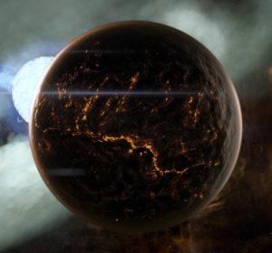 Sulfur, iron, and plutonium compose the bulk of Yilfaen‘s surface. Its powerful storms shift in magnitude as it orbits around the gas giant Yednoeth.