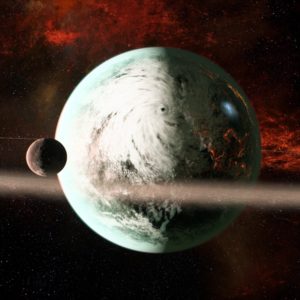 Named by an exile with a penchant for poetry, Bleeding Ruby‘s rings and tectonic instability are the result of a single asteroid impact that occurred less than a century ago.